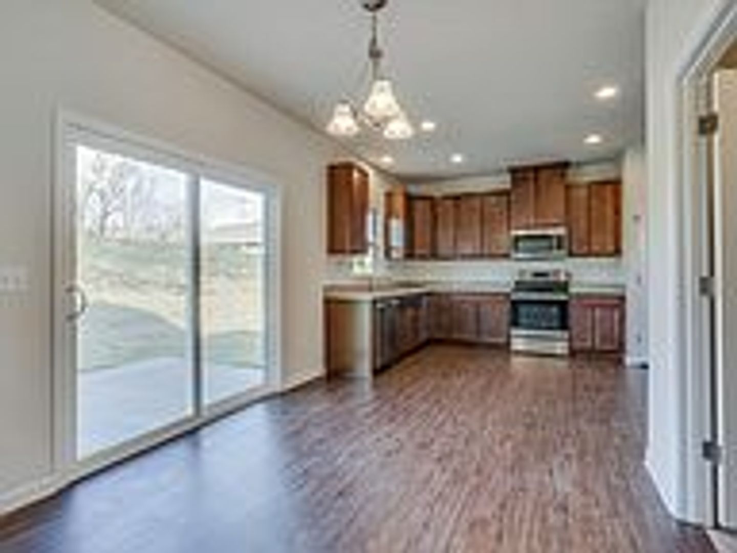 Open-concept kitchen and living area ideal for entertaining. Kitchen features granite countertops, off-set cabinetry with crown molding, pantry, breakfast area, and upgraded stainless steel appliances (not builder grade). LVP flooring throughout main level—no carpet downstairs. Oversized primary suite with walk-in closet. Brick & Hardie board exterior, patio overlooking fenced yard. Close to schools, shopping, dining, and more. A MUST SEE!