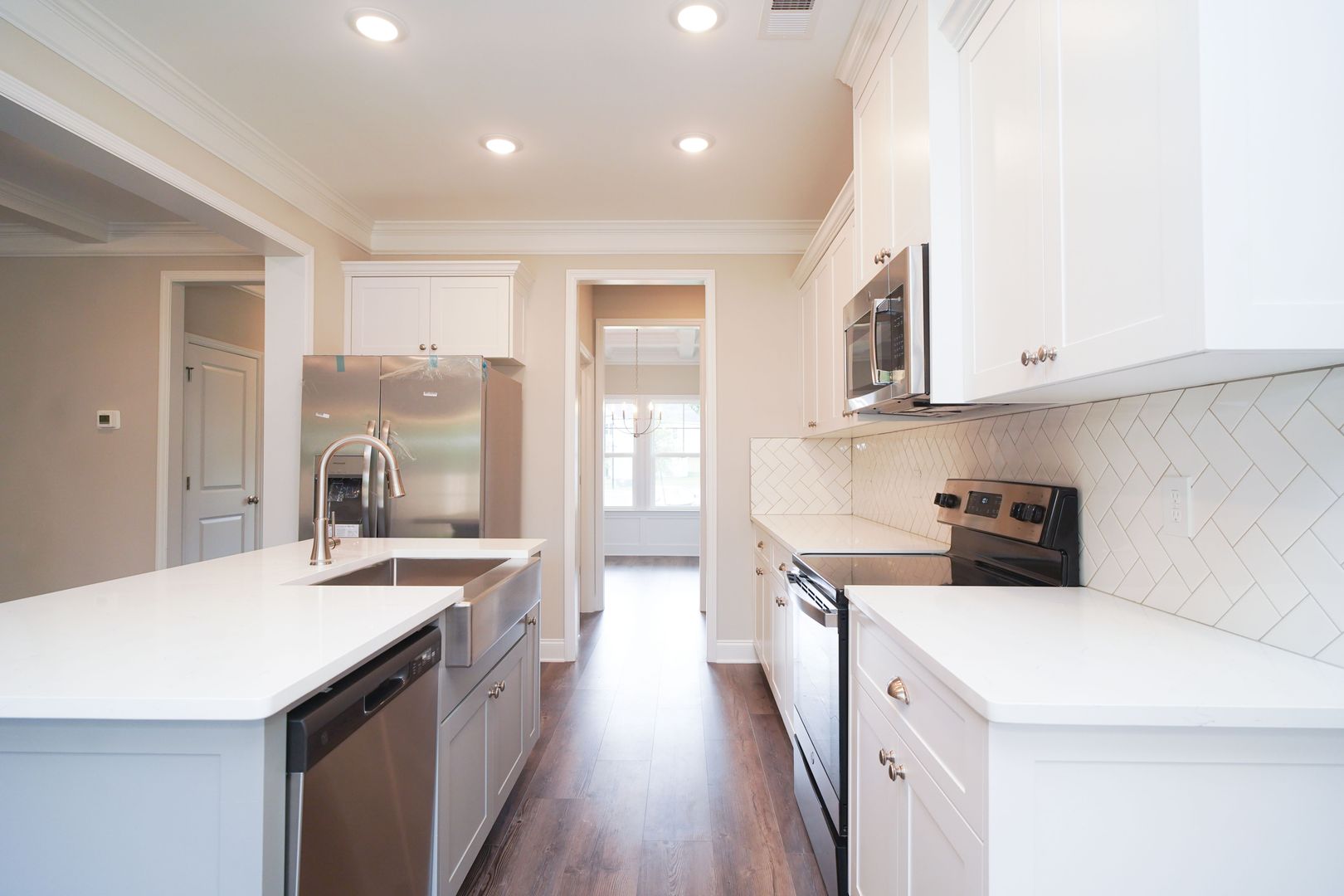 The kitchen is a true centerpiece, featuring granite countertops, a tile backsplash, stainless steel appliances, a large pantry, and an additional butler’s pantry for added storage and hosting ease.
