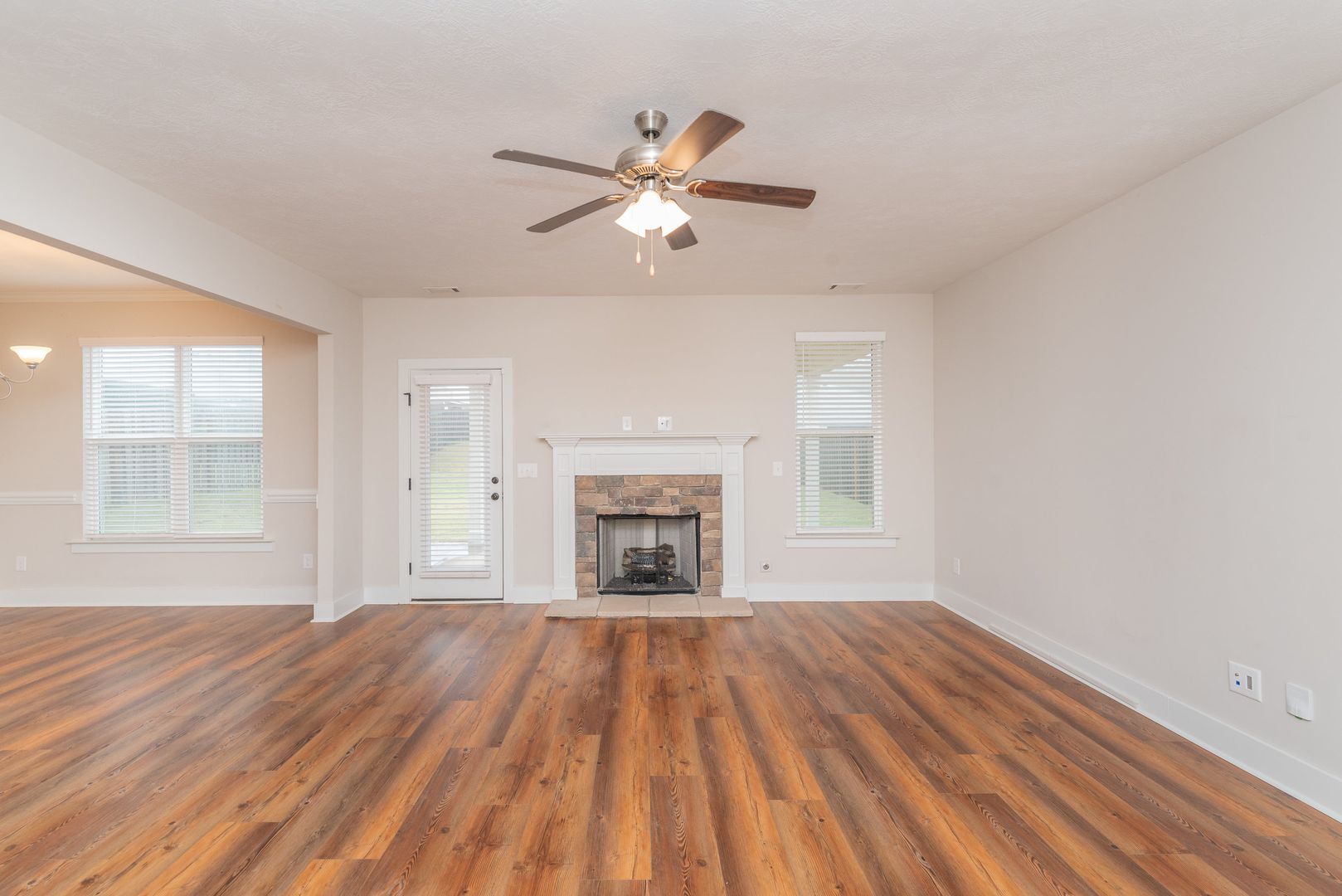 Step into this stunning 2-story home, designed with an open-concept layout perfect for modern living. The spacious great room, featuring a cozy gas log fireplace, flows seamlessly into the kitchen and breakfast area. Enjoy cooking and entertaining in the kitchen with gleaming granite countertops, a full tile backsplash, a breakfast bar, and a walk-in pantry. The foyer, great room, breakfast area, and kitchen are beautifully finished with durable waterproof Evacore click flooring.